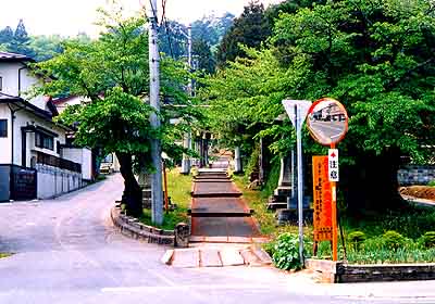 県道一関平泉線(旧国道4号)から参道が始まる